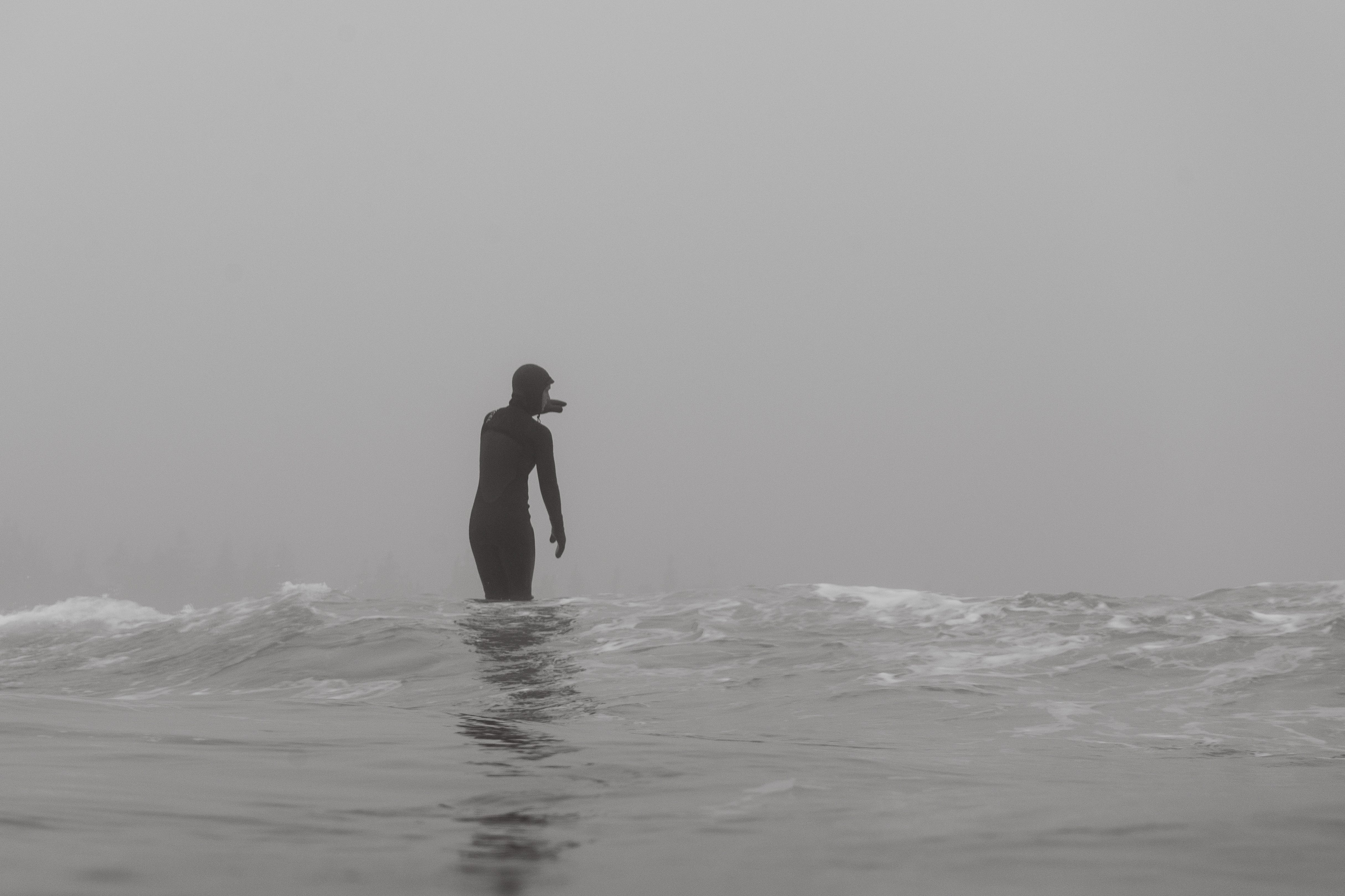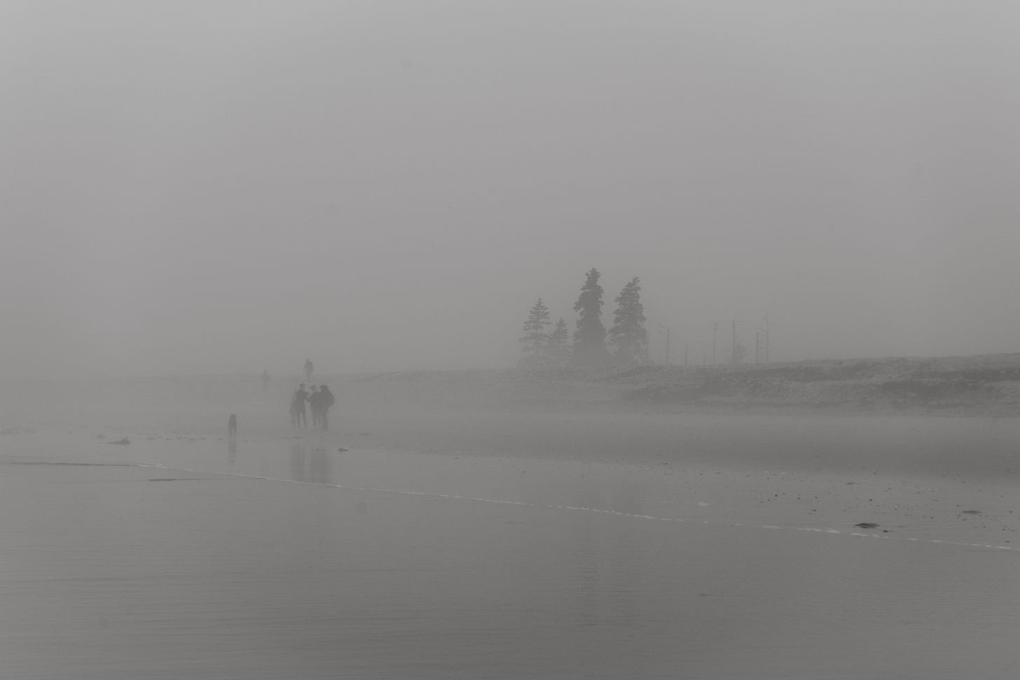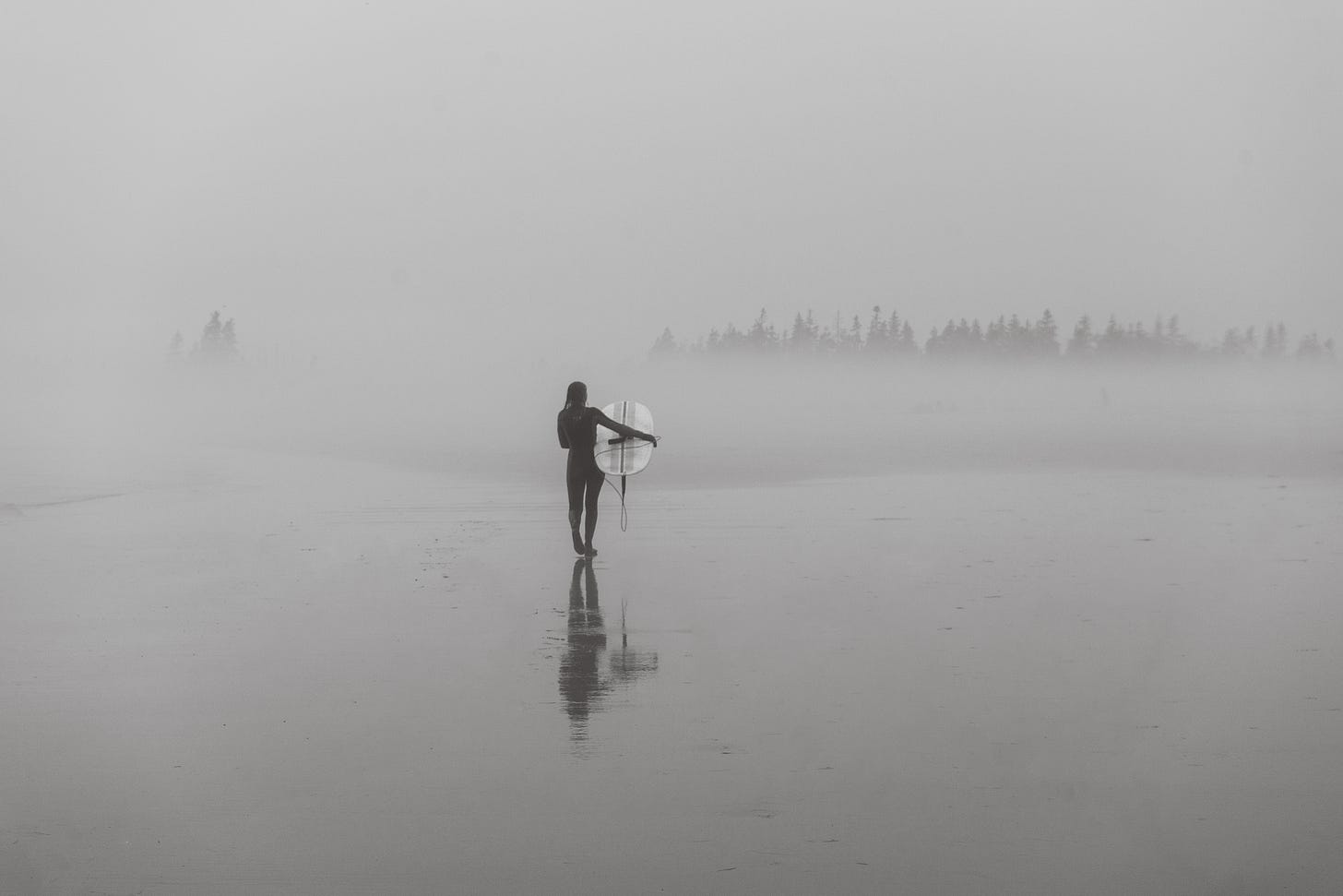 We made the mile long walk from the car park along a gravel track onto a pebble laden beach. An arching sprawl of sand spawned from the fog as we traversed closer and closer to the place where we would usually sit and surf from. On this day we could not tell if we were right on top of it or half a mile away. The silhouettes of people came, passed and vanished like they were never there. Only their footprints and welcome greetings a sign that the beach was comparatively busy. The water had barely warmed from when we first arrived on the east coast and so we wore mittens and boots for our surf. Or at least attempted to pull these on before we dove into the frigid slosh of the North Atlantic. Despite it being Canada day and the year having progressed somewhat into summer, the cold pervaded every aspect of the this summer’s day - getting changed in the car park had not been a sunny undertaking albeit a lot warmer than our first few surfs in Nova Scotia when day temps barely breached 10 celcius.